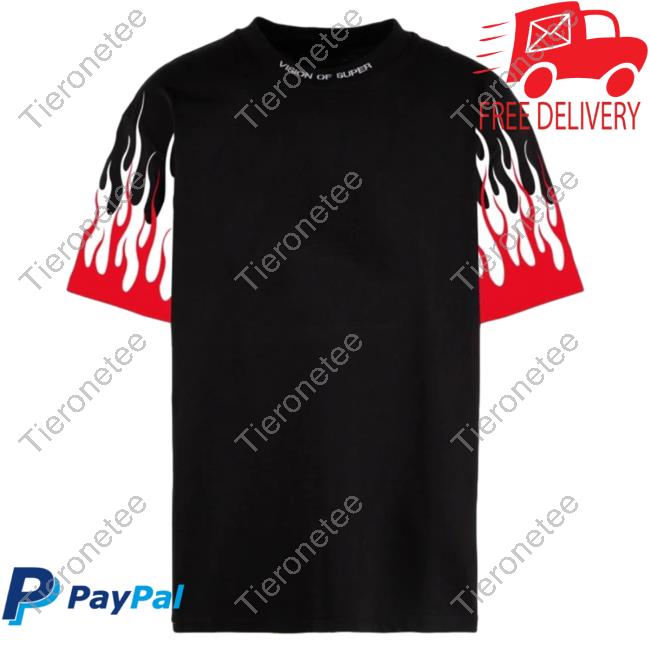 Official Vision Of Super Black Tshirt With Printed Red And White Flames
